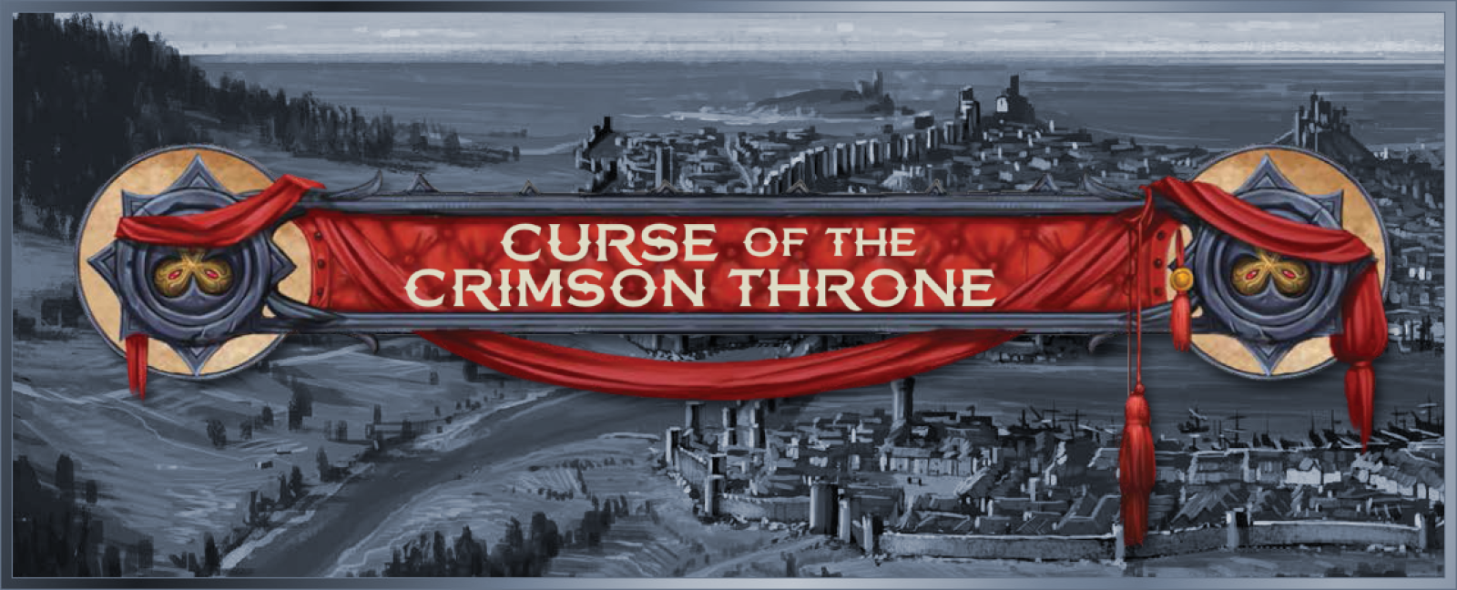 Korvosa, the Jewel of Chessenta, has long sparkled on Sea of the Fallen Stars’ northern shore. Established 300 years ago by Tchazzar at the height of that empire’s expansion, the city now commands its own destiny. A line of Korvosan kings and queens emerged to rule the city, establishing an infamous seat power—the Crimson Throne. Rulers have sat upon the Crimson Throne for more than a century, and the city has flourished. Yet the monarchy always seems on the brink of disaster. The Crimson Throne is not a prize to be won—it is a curse. No monarch of Korvosa has died of old age, and none have produced an heir while ruling. Even though King Eodred II controls Korvosa more fully than any previous monarch, that control remains tenuous, and many secretly count the days until their latest king falls to what they call the Curse of the Crimson Throne.
